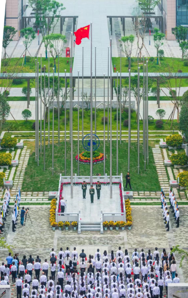 升旗儀式上,伴隨著雄壯激昂的《義勇軍進行曲》,鮮艷的五星紅旗冉冉升起,全體人員向國旗行注目禮,同唱國歌,共同祝愿祖國更加繁榮昌盛。