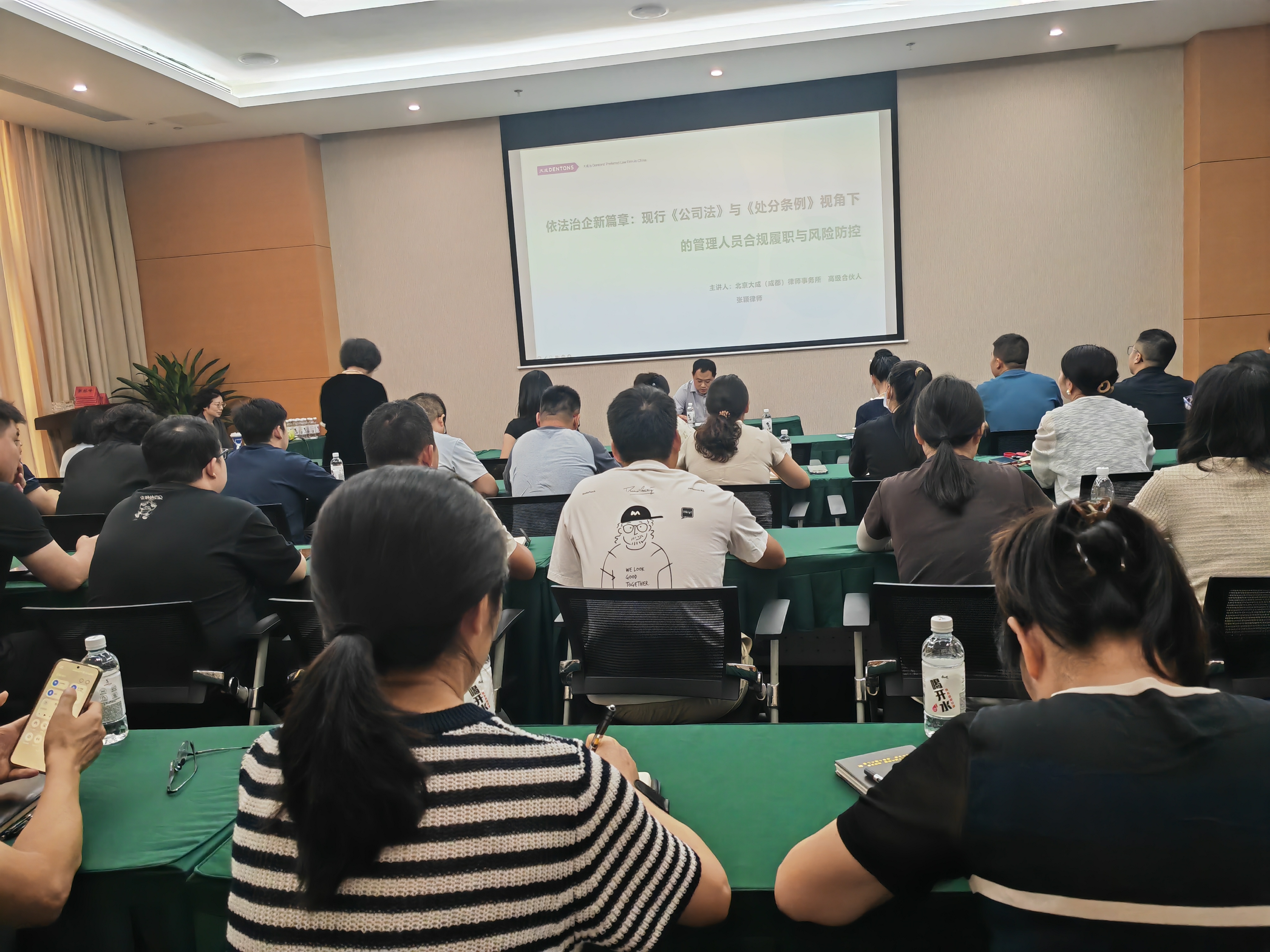 本次培訓特邀集團常年法律顧問北京大成律師事務(wù)所高級合伙人張穎律師擔任主講。張律師圍繞新《公司法》對國有企業(yè)治理結(jié)構(gòu)的深遠影響、對外股權(quán)投資的法律新規(guī)、經(jīng)營違規(guī)責任追究機制更新以及企業(yè)合規(guī)體系建設(shè)的現(xiàn)實路徑等核心內(nèi)容,結(jié)合典型案例進行了系統(tǒng)剖析與深入講解。