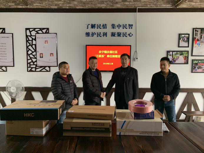 11月20日上午,九聯(lián)公司捐贈給“三聯(lián)系”單位永寧鎮(zhèn)永福社區(qū)黨群服務(wù)站的辦公設(shè)施設(shè)備由公司黨委副書記、紀(jì)委書記周嘉良帶隊(duì)送達(dá)并進(jìn)行了現(xiàn)場移交,本次捐贈物資包括電腦、投影儀、打印機(jī)等辦公用品,價值3.65萬元。